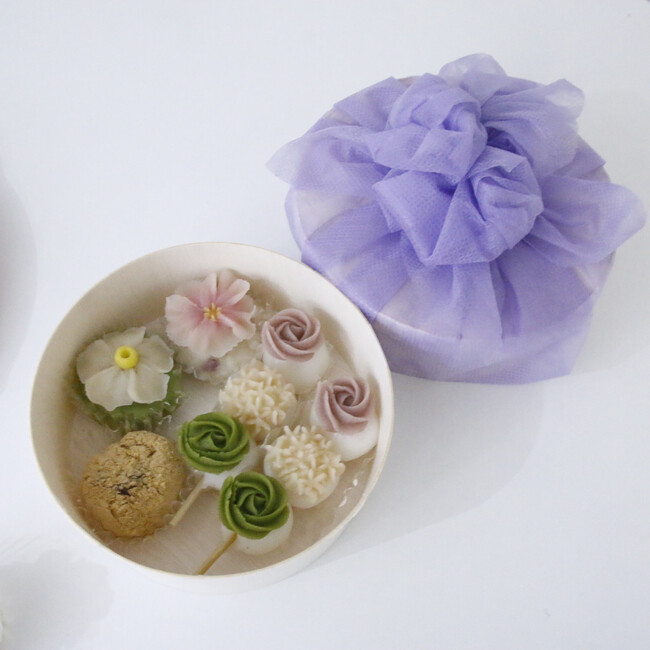 風呂敷でお花のように包まれているため、手土産にもおすすめです。