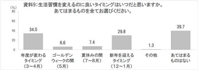 生活習慣を変えるタイミングについては、「年度が変わるタイミング(3~4月)」が34.0%と最多となりました。(資料9)