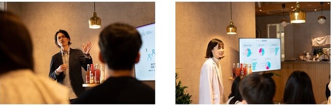 第1回のワークショップを3月4日にスマドリバー渋谷で開催し、7月に発売する商品のアイデア出しを実施しました。具体的な飲用シーンとして「テラス席のバルで友人にバースデーサプライズ」「夏夜のバルコニー」「花火大会でダブルデート」などのアイデアが生まれました。4月1日にスマドリバー渋谷で試作品の試飲会を実施します。