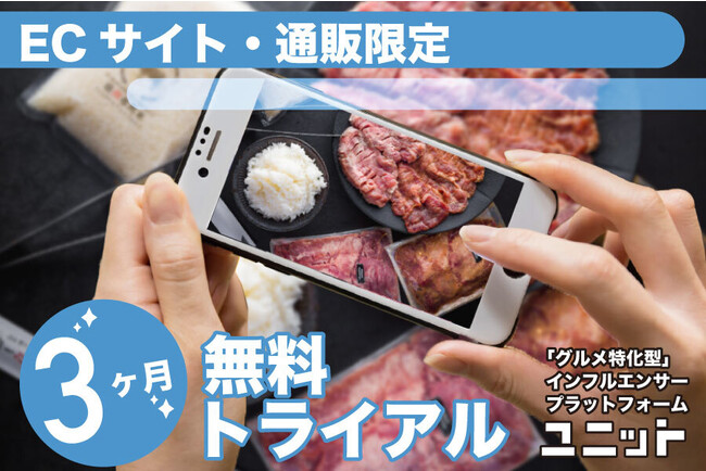 株式会社UNIT(本社所在地:東京都渋谷区、代表取締役 岡野 剛士)の「グルメ特化型」インフルエンサープラットフォーム『ユニット』は、応募いただいた企業より抽選で10店舗のグルメ通販に対し、3か月無料トライアルキャンペーンを実施します。