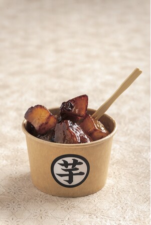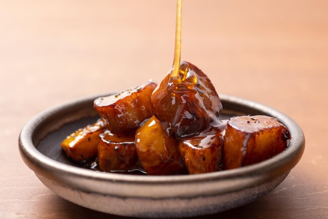 甘く仕上がった濃密焼き芋を高温でさっと揚げ、蜜をたっぷりかけて大学芋に仕上げ、口の中でとろける食感を生みだしました。