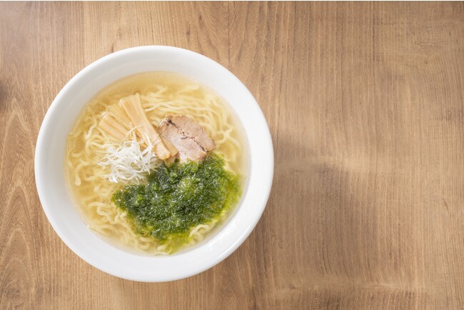2.あおさの風味との相性を考慮して試作を重ねた塩スープは、鶏ガラスープをベースにホタテ、昆布だしと野菜の旨味を加えたさっぱりとした中に深い旨味を存分に味わえるあるスープに仕上げました。