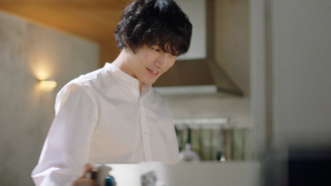 A. 今回はちょっとロードムービーじゃないですけど、わくわくウキウキした気持ちで帰ってきて、そこから「キリン グリーンズフリー」と一緒にご飯を食べるという、日常に近いストーリーを描くCMでした。照明の感じやセットがとても心地の良い空間で、「キリン グリーンズフリー」とハンバーガーを一緒に食べられて、おいしくて、楽しい撮影でした。