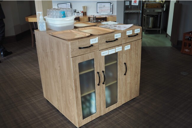 元々は3名で切り盛りされていたお店。江部さんが引き継がれてからは従業員もおらず一人でやっていかなければならなかったので、いくつか工夫して変えられた点もありました。飲み物は全てセルフサービス。掃除はお掃除ロボットを活用。従業員がいなくても一人で無理せず持続可能なお店づくりを目指されていますが、決して手を抜くということではなく、お店も厨房も大変綺麗にされています。