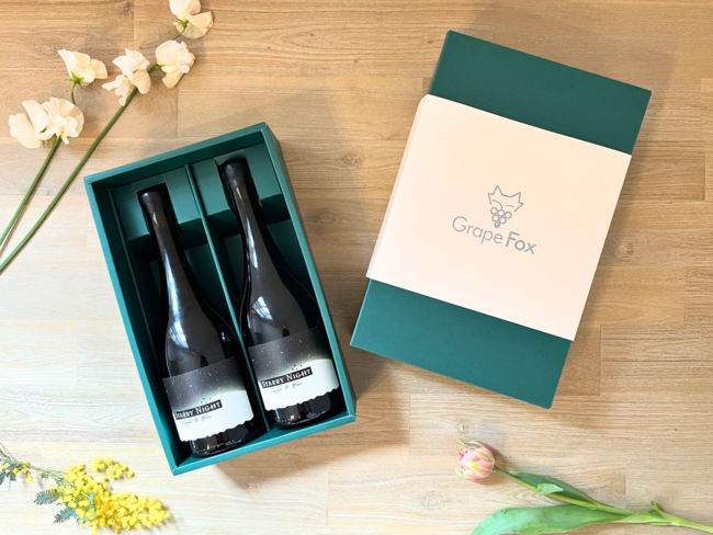 GrapeFoxでは、ワインを2本ご購入いただいたお客様みなさまへ、ギフトボックスにお入れして商品をお届けしております。今回、GrapeFoxオリジナルギフトボックスはリニューアルし、『吉(きち)ボックス』