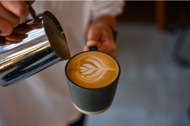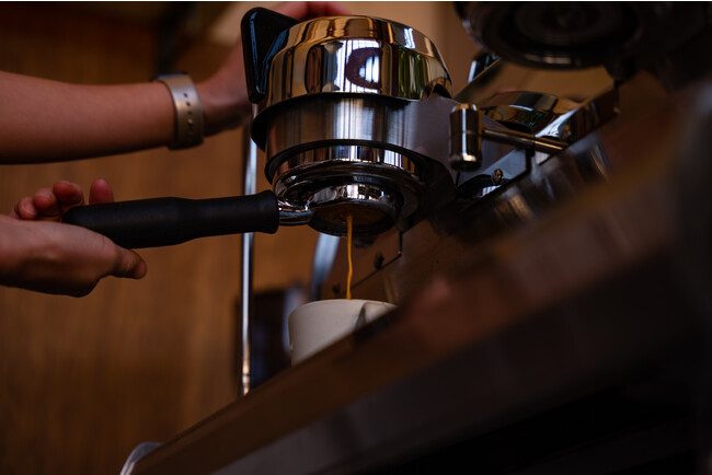 エスプレッソマシンはシアトル系コーヒーの本場から輸入したハイスペックマシン「SYNESSO MVP」を使用。焙煎機は地元・京都のメーカーが作る「NOVO MARK2」で丁寧に焙煎します。世界中から厳選したコーヒー豆を焙煎し提供する、健康的で香り高いオリジナルブレンドコーヒーは、抽出されたコーヒーから立ち上るアロマ、コーヒーの果実本来が持つ酸味、口に含んだ時の?触り、味の厚みや飲んだ後の余韻といった味わいのバランスのすべてを高い次元で追い求めています。