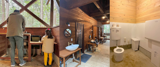 一方で、オートキャンプ場なので、サイトに車が横付けできたり、利便性も抜群。トイレ・流し・洗面台は、こどもが複数人いても困らないように、十分なスペースと、十分な数があります。