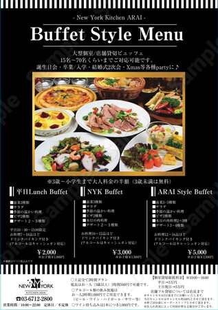 ニューヨークキッチンアライ(イオンスタイル碑文谷店)ではパーティーやイベント利用にもオススメの貸切ビュッフェコースをご用意しております。