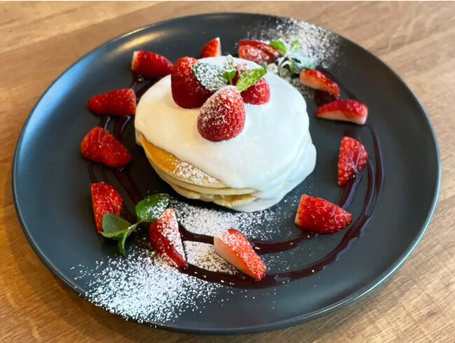 甘さ控えめの生クリームと旬のいちごを贅沢にあしらい、周りにはほんのり酸味がアクセントのベリーソースを。