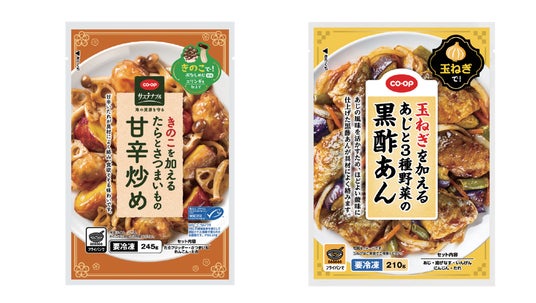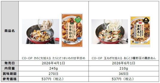 日本生活協同組合連合会(略称:日本生協連、代表理事会長:新井ちとせ)は、具材がすべて入った従来のおさかなミールキットに加え、ご家庭の常備野菜を1品加えるだけで、作りたての美味しさと満足感のある食べ応えが楽しめる新たなラインアップとして、「CO・OP きのこを加える たらとさつまいもの甘辛炒め」を2026年4月1日より、「CO・OP 玉ねぎを加える あじと3種野菜の黒酢あん」を2026年6月1日より、順次全国で発売します。