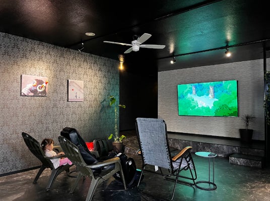 水風呂、ととのいスペースに加え、プロジェクターが設置されており、NetflixやYouTubeなどを楽しみながら過ごすことができます。サウナ後も自分たちだけの空間でゆっくりと時間を過ごせる、プライベートサウナならではの構成です。