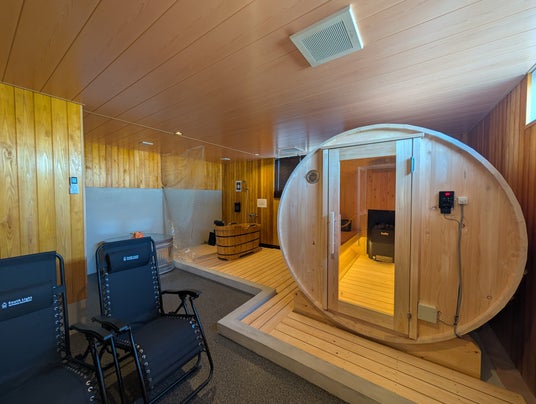 一番広いバレルサウナの部屋3つ目は、最も広い部屋のバレルサウナです。