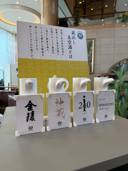 「蔵出し真空酒」サービスは、専用パウチによる軽量化と省スペース化を実現し、飲料の輸送・管理における効率化に寄与します。また、高真空状態での保存により、日本酒の繊細な風味を適切な状態で維持できることが特長です。これにより、グランドエクシブ初島クラブにご滞在のお客さまには、幅広いラインナップから常に品質を保った日本酒をお選びいただき、リゾートでのひとときをより豊かにお楽しみいただけます。