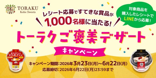 発売から6月下旬にかけて、LINEで応募!「レシート応募ですてきな賞品が1,000名様に当たる!トーラクご褒美デザートキャンペーン」を実施いたします。