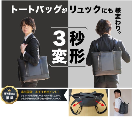 「toteluxe(トートリュクス)」は、ビジネスシーンに限らずスポーツ、フィットネスジムやヨガスタジオに通う消費者にも利用して頂けるバッグであり、また、中学、高校などのスクールバッグとしても