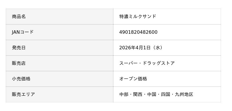 「特濃ミルクサンド」はふんわりしっとりした生地で、UHA味覚糖の「特濃ミルク8.2」の味わいをイメージした北海道産生クリーム入りのミルククリームをはさんだ商品です。パッケージデザインもUHA味覚糖の監修を受け、「特濃ミルク8.2」そっくりに仕上げました。