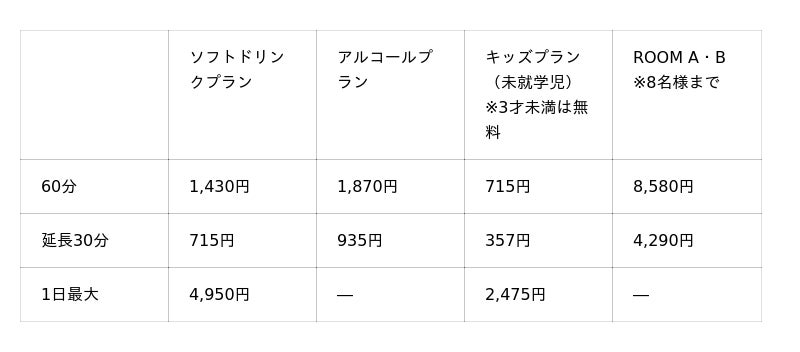 ■「TSUTAYA BOOKSTORE大井町トラックス SHARE LOUNGE」料金表(税込)