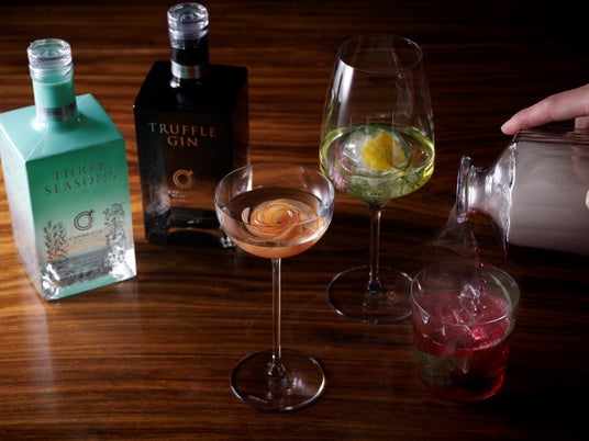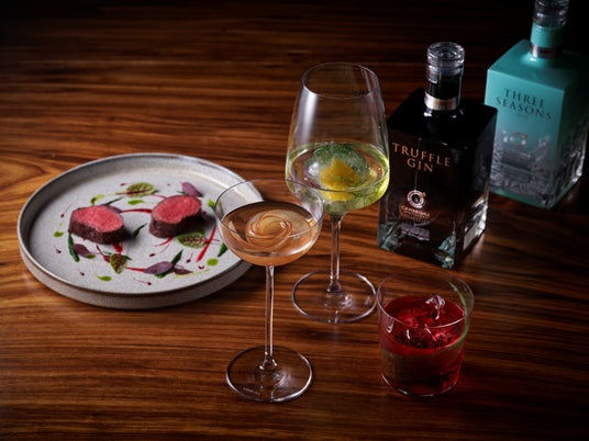 季節の移ろいを表現した「スリーシーズンズジン/Three Seasons Gin」、そして希少な白トリュフを使用した「トリュフジン/Truffle Gin」。それぞれが料理の香りと響き合い、コース全体を通して“香りのレイヤー”を体験いただけます。