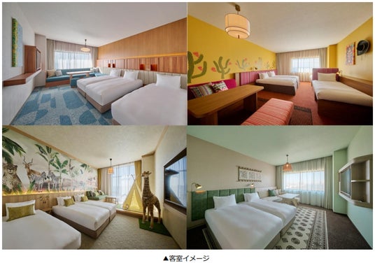 「ザロイヤルパーク舞浜」は、東京ディズニーリゾート徒歩圏内の立地に 750 室のグループ最大規模で開業 しました。“TRAVELOGUE=異国の旅の記憶”のコンセプトを体現した空間と、快適な旅をサポートする機能 を兼ね備え、旅のプロローグとエピローグを彩る滞在を提供します。客室は、ご家族連れやグループでのご利 用に合わせ、4 名利用を中心に最大 6 名様までご宿泊いただける多様なタイプを揃えており、世界の 4 つの海 をテーマにデザインしています。