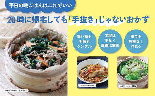 第一弾よりパワーアップして登場!せいろ1つで主菜から副菜まで完成!「家事シェア」時代に最適な、時短・ヘルシー・片付け楽々な最新レシピ集です。