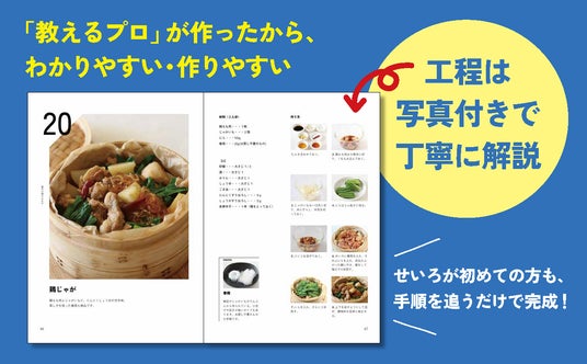 誰でも実践できるプロセスがわかりやすい工程はすべて写真付きで解説し、調理の流れを視覚的に把握できる構成としている。指導経験に基づき、迷いやすいポイントを排除した手順設計により、料理経験の少ない人でも取り組みやすい点が特長。作業の順序が明確で、手順どおりに進めることで安定した仕上がりが得られる。