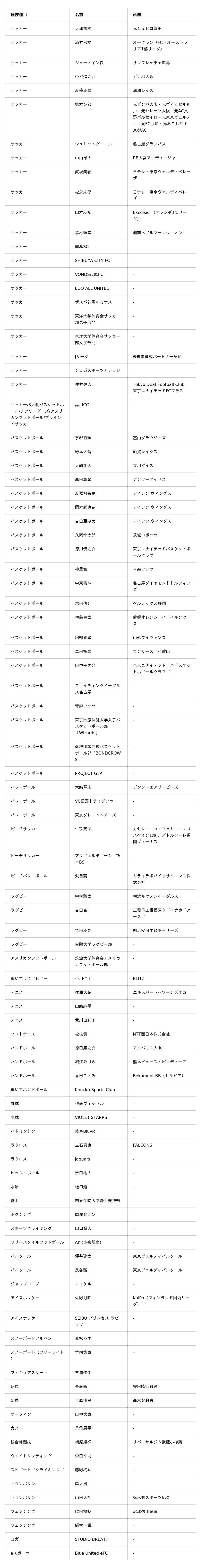 <BASE UP SPORTS サプライヤー契約一覧(現時点)>