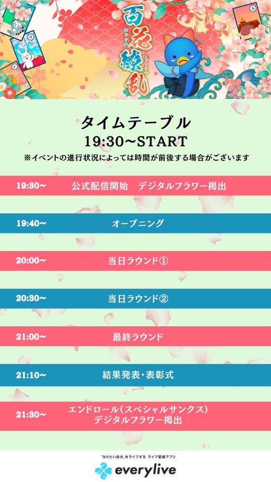 BIGオンラインイベント「百花繚乱 彩の祝典」は、ライブ配信アプリ「everylive(エブリライブ)」において開催される年間最大規模のイベントであり、予選を勝ち抜いたライバーが本戦に集結し、配信パフォーマンスと視聴者からの応援(ギフティング)がリアルタイムで交差することで、非常に高い熱量と一体感を生み出す点に特徴があります。