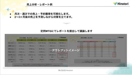 Hinotoriは、この構造的な課題を「一貫した支援体制」で解消します。データ分析に基づいた揺るぎない戦略を策定し、それをSNS発信やプラン作成といった現場の実行に即座に反映。戦略と現場を高速で循環させることで、一時的な数字に振り回されない、持続可能な集客基盤を構築します。