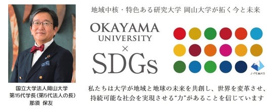 国立大学法人岡山大学は、国連の「持続可能な開発目標(SDGs)」を支援しています。また、政府の第1回「ジャパンSDGsアワード」特別賞を受賞しています。地域中核・特色ある研究大学として共育共創を進める岡山大学にご期待ください