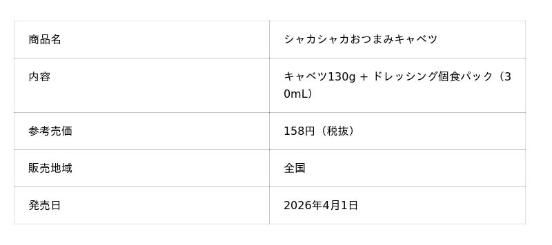 本商品は、ざく切りにカットされたキャベツと個包装の「ピエトロドレッシング 和風しょうゆ」30mLがセットになっています。袋を開けてドレッシングを入れ、袋のまま“シャカシャカ”と振るだけで味付けが完成。袋のまま味付けできるため、混ぜるボウルも不要。洗い物も減って手軽に野菜を味わえる、新しいスタイルの商品です。キャベツにドレッシングの味わいがしっかりと絡み、軽いおつまみにもぴったり。家飲みや、もう一品ほしいときなど、さまざまな食シーンで気軽に野菜を楽しむことができます。