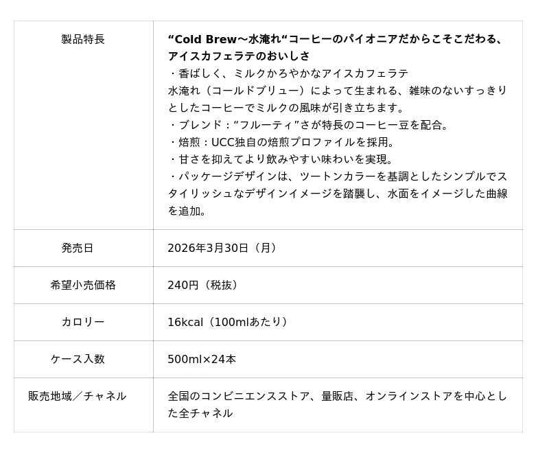 『UCC Cold Brew LATTE PET500ml』製品概要