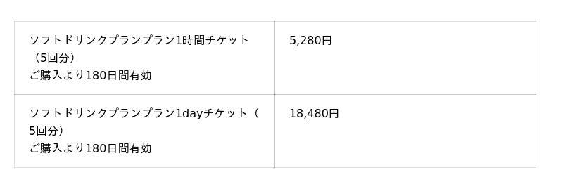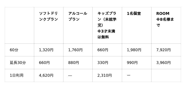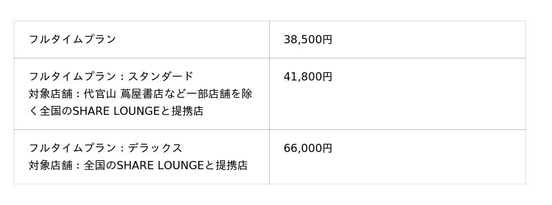 ■「SHARE LOUNGE 晴海トリトン with H1T」料金表(キャッシュレス専用)