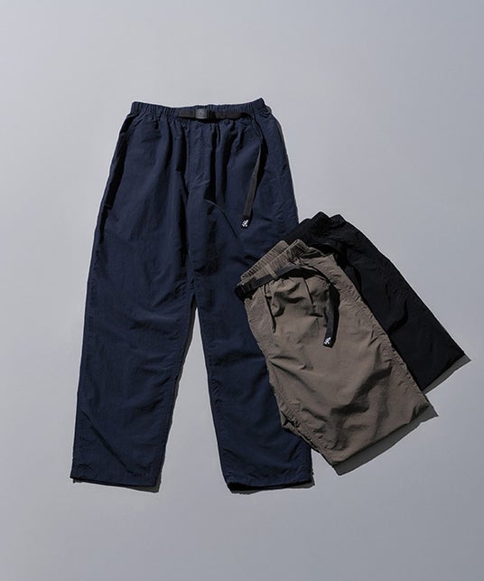 定番のNYLON TRACK PANTももちろん販売中。アウトドアブランド「グラミチ」より、大人のタウンユースに最適なナイロンパンツです。