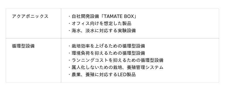アクアポニックス以外にも、循環を通じて栽培効率を上げるための実験設備、ランニングコストを抑えるための循環型設備など、さまざまな実験設備を展示します。