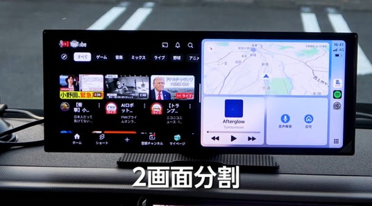 ■ ナビ+動画の2画面同時表示ナビを確認しながら動画やアプリを同時に表示でき、使い方の幅が大きく広がります。