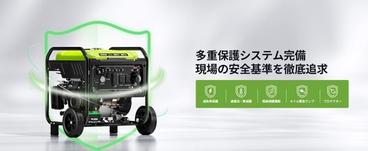 GT8000iOTEは、過負荷、過電流、過熱、短絡に対応した多重保護機能を備えています。さらに、オイル警告ランプおよびプロテクターを搭載しています。