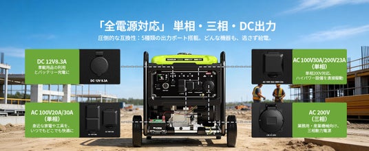 近年、電力需給の逼迫や使用シーンの多様化に伴い、発電機には「使える」だけでなく、さまざまな場面で安定した電力供給が求められています。しかし、従来の切替式発電機では、単相と三相の出力差により、使用できる機器に制限が生じるケースも少なくありませんでした。