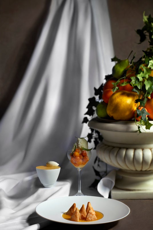 デザートは、古典的な表現と自然の色彩からインスピレーションを得た「レ・デクリネゾン※」で、季節感、感情、そして視覚的な芸術性を反映し、物語性をさらに高めています。