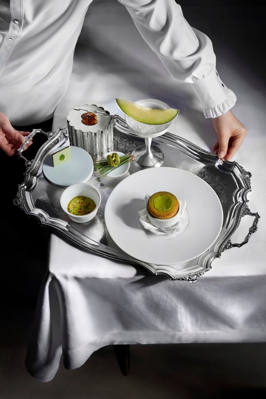 ダイニング体験に巧みに組み込まれたテーブルサイドサービスは、ラッフルズの歴史のひとつと言えます。厳選された料理は、お客様の目の前で提供または仕上げられ、優雅でありながら親しみやすい雰囲気を保ちつつ、劇的な瞬間を演出します。この特別な雰囲気は、ラッフルズ・ホテル・シンガポールのコレクションから厳選された銀食器、修復されたサービングピース、クラシックなワゴンの使用によってさらに強調され、かつてラッフルズの代名詞であったグランドホテルダイニングの伝統を体現しています。