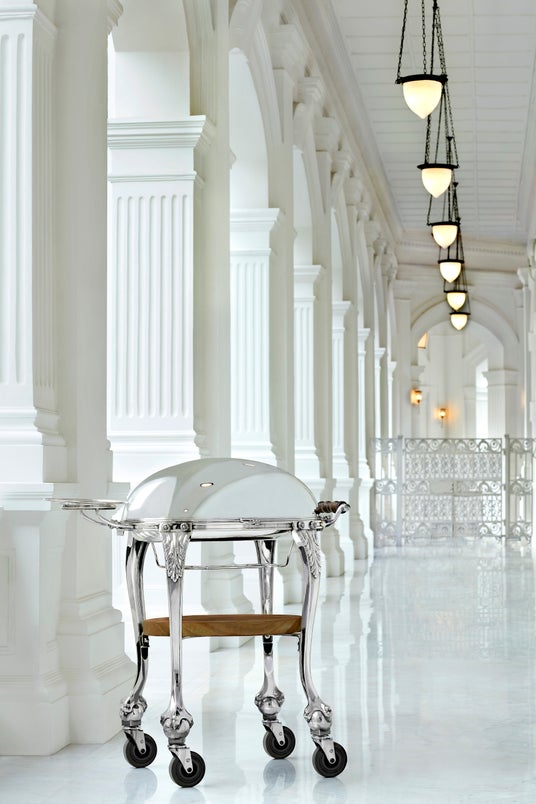 - 「Boeuf aux Sept Poivres 1887(7種のペッパーステーキ)」:修復された由緒ある銀製のビーフワゴンで提供されます。このワゴンは、ビクトリア朝時代のダイニングでテーブルサイドでの華麗な肉の切り出しを彷彿とさせ、ラッフルズの食文化の重要な一部となっています。第二次世界大戦中は、略奪から守るためホテルの敷地内に丁寧に埋められ、戦後に発掘され、愛情を込めて修復されました。以来、当ホテルのフォーマルダイニングルームを彩り続け、過去と現在をつなぐ時代を超えた儀式を、すべてのサービスを通して継承しています。
