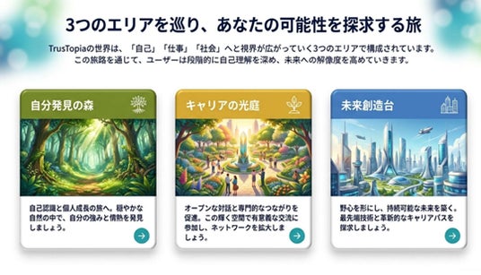 ■没入型キャリア構築プラットフォーム『TrusTopia』の3つの特徴的な体験エリア