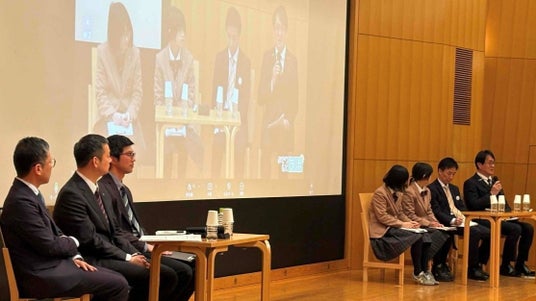 受賞者は、パネルディスカッションに登壇し、「みんなでつなぐ食と農の未来」をテーマに、産地と消費者など多様な主体が継続的に連携するためのポイントなどを話しました。JAぎふのみどり戦略部・加藤敏雄部長は、消費者の理解を得るため、生産現場を見てもらう取り組みなどを紹介。泉大津市成長戦略課の宮嵜嘉一課長は、遠隔地連携は小規模の取り組みから始め、顔の見える関係性をつくることが重要だと指摘しました。安城農林高校土壌研究研修班は、訪問販売で自ら思いを伝え飲食店など地域を巻き込んだことを紹介しました。生産者、行政、JAに流通業者を加えた“四位一体”で「コウノトリ育む農法」を推進してきた豊岡市のコウノトリ共生部・坂本成彦部長は、取り組みへの共感が流通業者の米の取り扱いにつながったことを紹介しました。