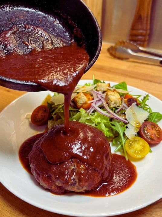 お肉を焼いたフライパンで混ぜるだけ。あのイタリアンの、黒光りするソースになる。