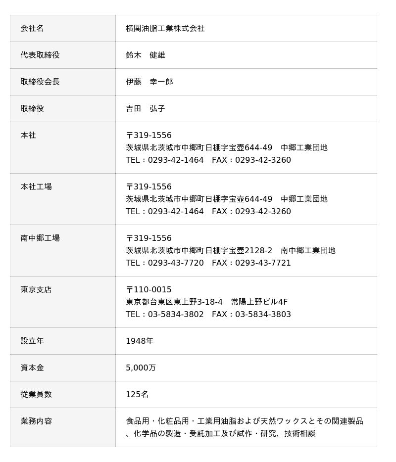 会社概要<横関油脂工業株式会社>