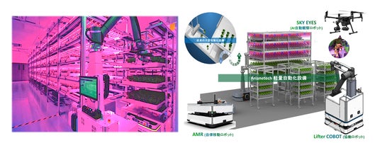 シンガポールで手掛けた「自律移動ロボット(AMR)と屋内用ドローンによって運営される自動生産型植物工場」イメージ
