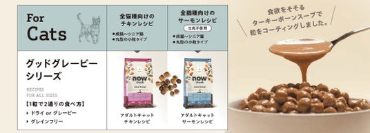 ペットフードに対して、世界で最も厳しい規制を設けているヨーロッパ諸国を含む30カ国以上で愛される、ペットキュリアン社の『NOW FRESH』は、「NOW FRESHグッドグレービー キャット」シリーズを新発売致します。