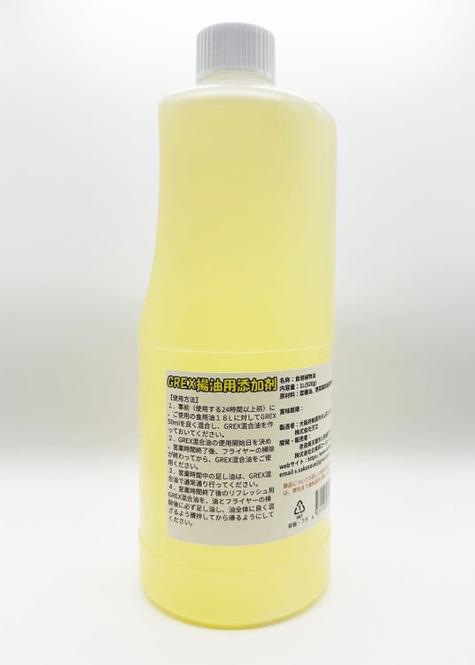 GREX揚油用酵素の使用量は、食用油18リットル当たり50mlです。