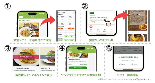 本サービスは、社員食堂の“運営情報”と従業員一人ひとりの“食事・健康データ”をアプリ上で連携させることで、社員食堂を企業の健康経営を支える基盤へと進化させる社食ソリューションです。