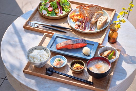 焼きたての鮭を主役にした特製の和朝食と糸島の人気ベーカリー「奥添製パン」のパンを使用した洋朝食の2種をご用意。