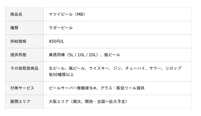 松井酒造合名会社(本社:鳥取県倉吉市)は、総合酒類メーカーとしての新たな挑戦として、業務用ビール「マツイビール(MB)」を大阪エリアの飲食店様向けに本格展開いたします。